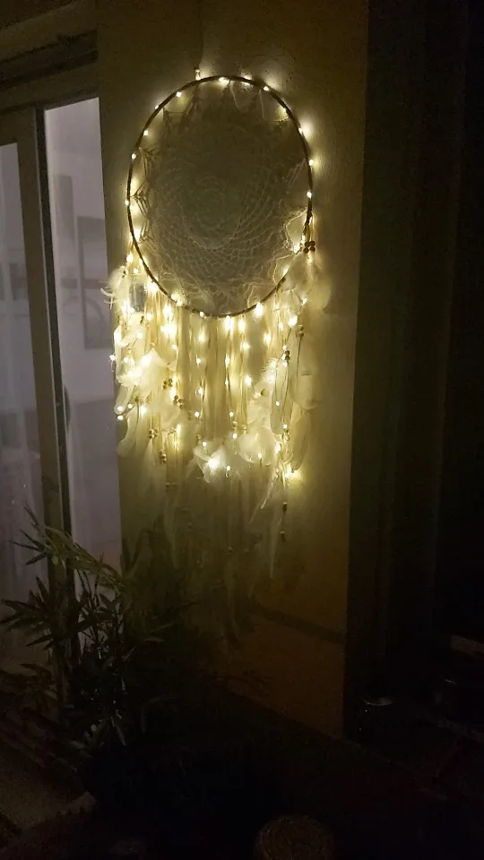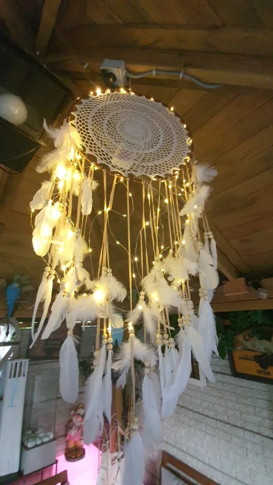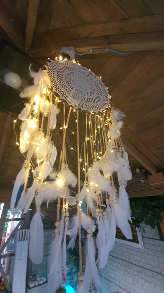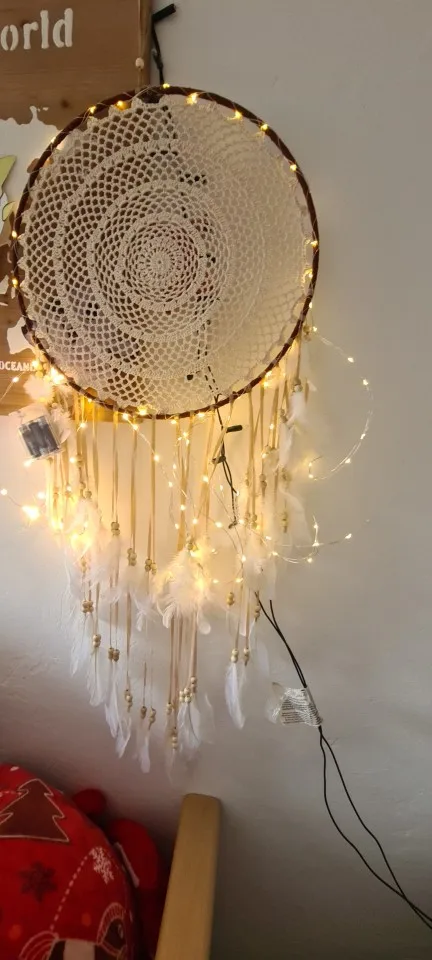 W przypadku produktów ze światłami klienci nie muszą samodzielnie nawijać sznurka świetlnego, lekki sznur produktu został nawinięty na sieć dreamcatcher!
