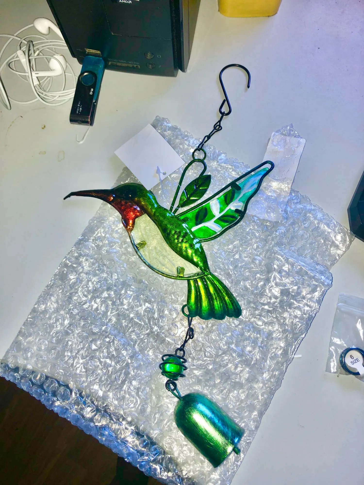 Iivraison rapide... Dommage que le colis ait été emballé si peu soigneusement...car emballé en pliant le bec du colibri...