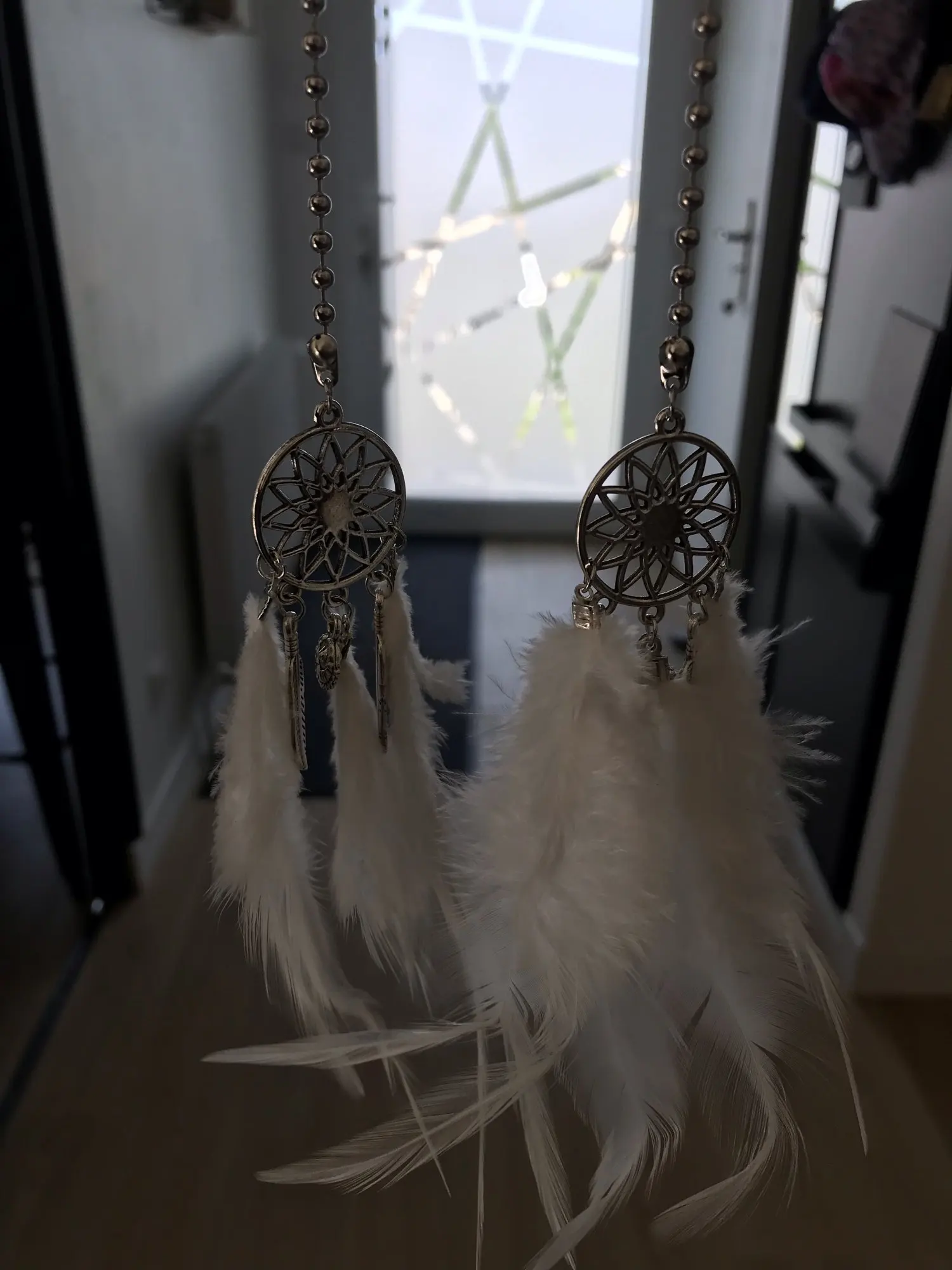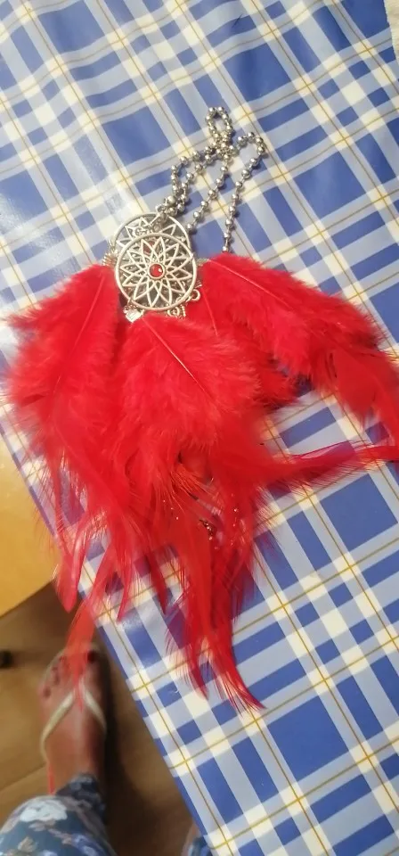 Rozmiar: długość łańcuszka 50cm, średnica pętli. 2.5cm, łapacz snów długość 15cm