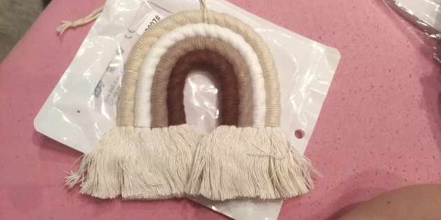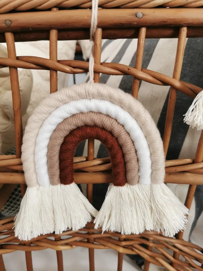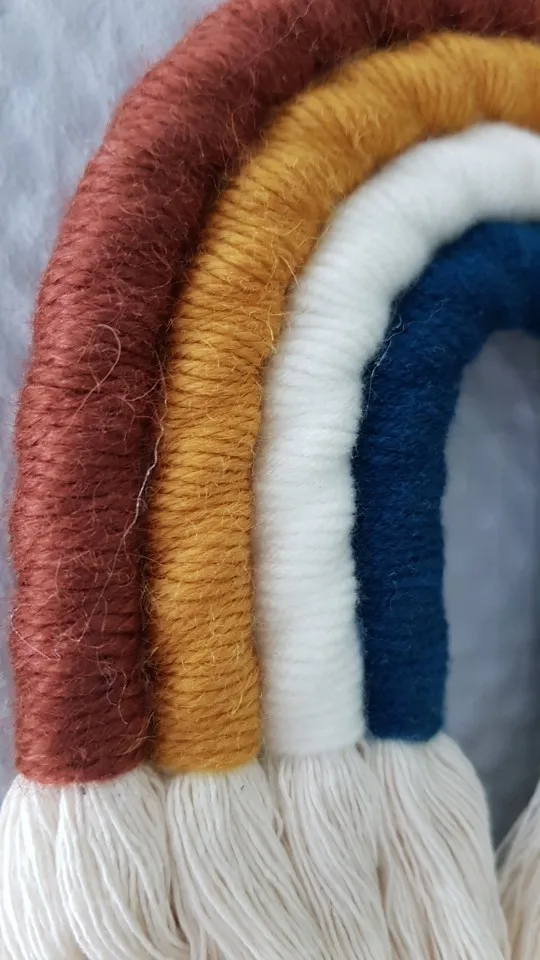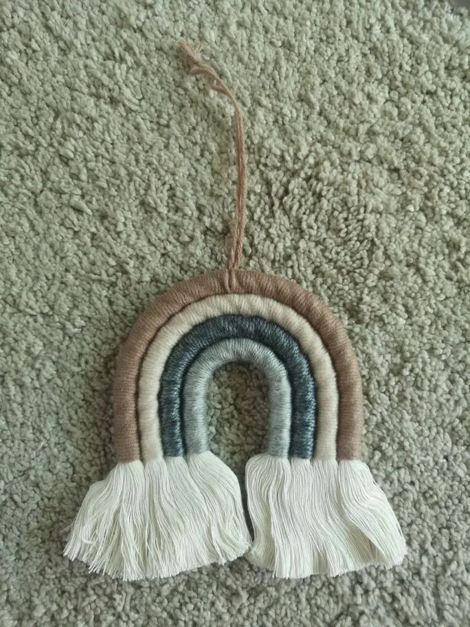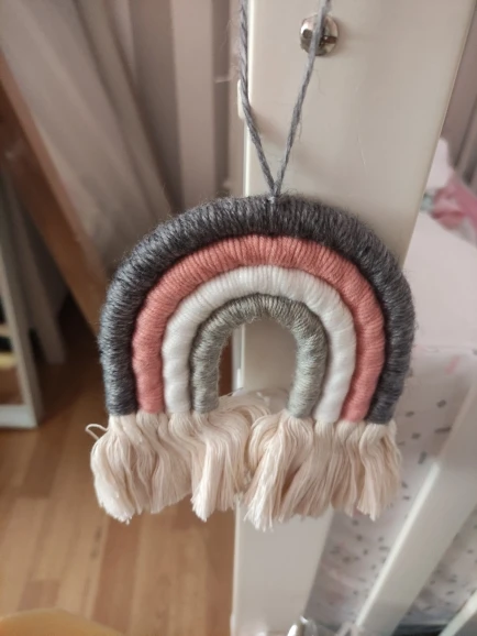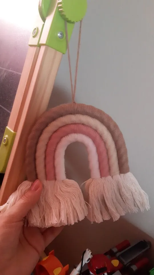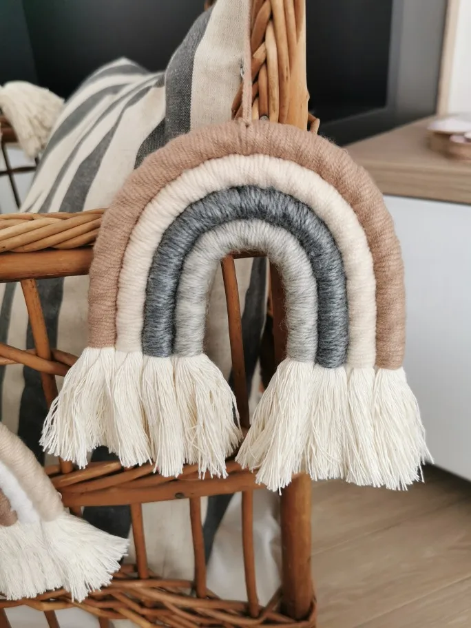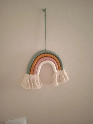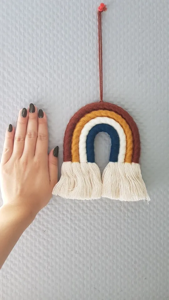Materiał: ręcznie robione piękne ozdoby wykonane z przędzy i bawełnianej liny. Dodaj charakter i urok do każdej ściany w twoim domu dzięki temu tkanemu wiszącemu tęczowi.