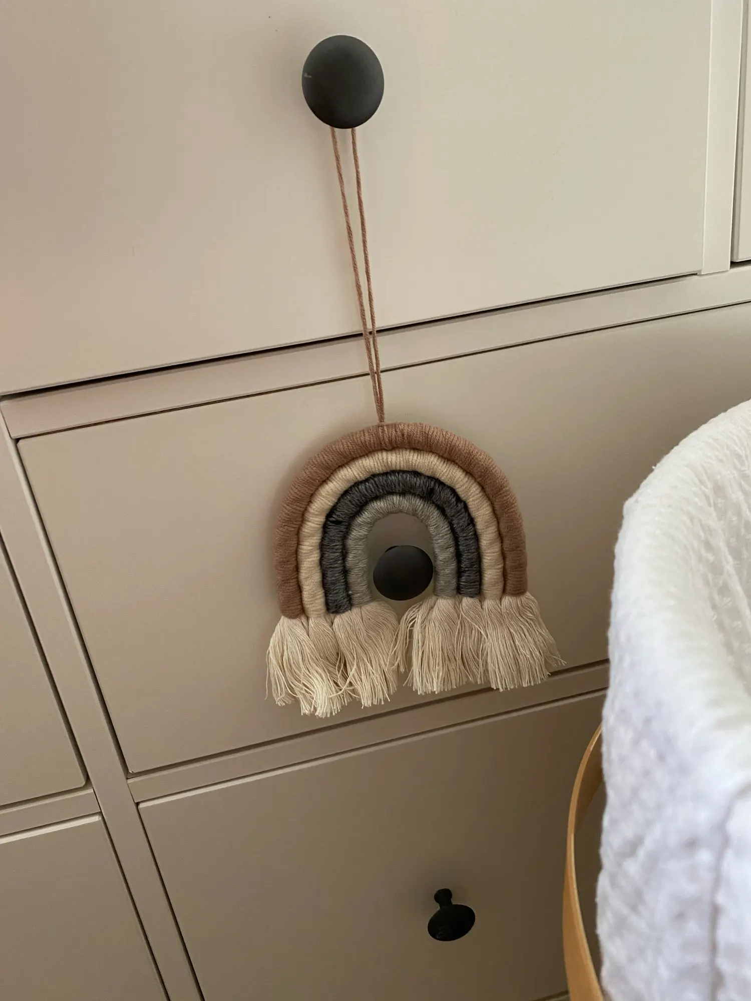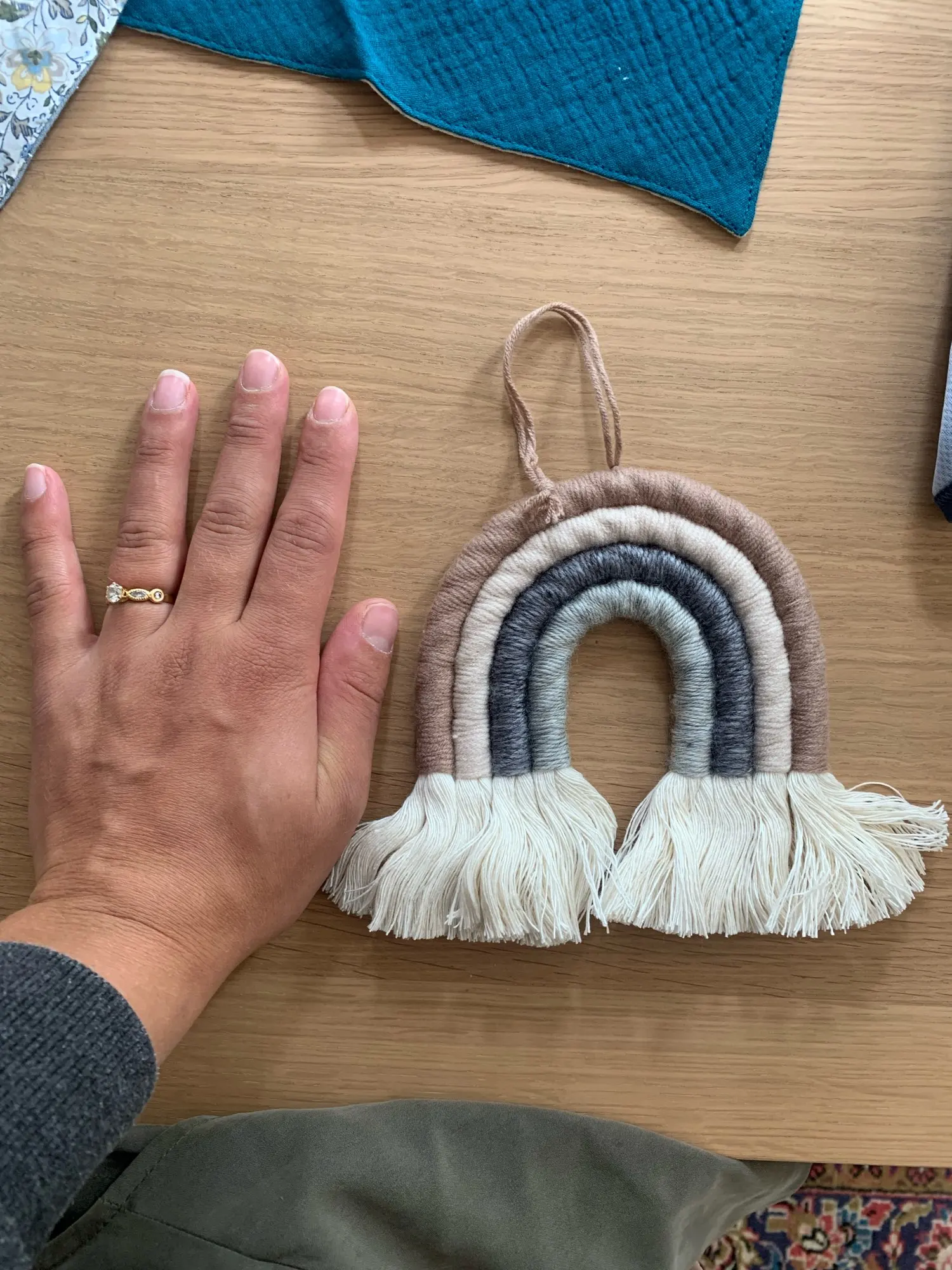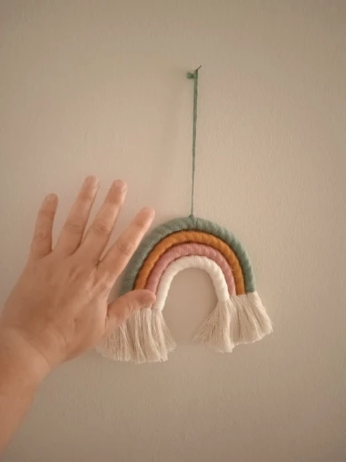 Ręcznie tęczy. Zawiera 4 linie o żywych kolorach, eleganckie i uniwersalne, ta tęczowa zawieszka ścienna jest dobrym wyborem do dekoracji sezonowych i świątecznych, pokoju dziecięcego lub pokoju dziecinnego.