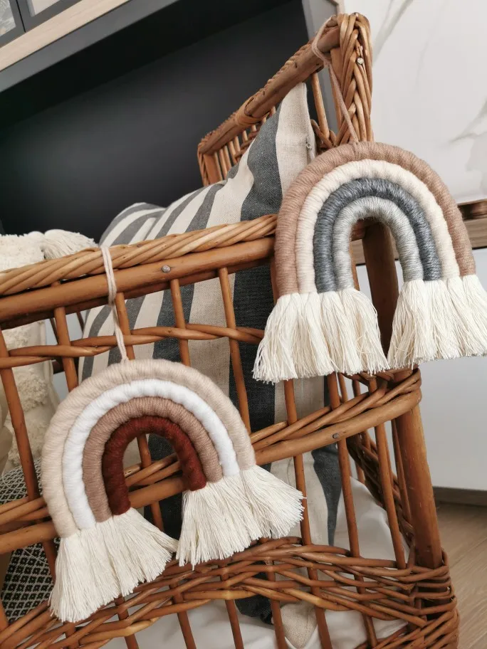 Makrama Rainbow Wall wiszące dekoracyjne kolorowe do wystroju domu Boho, zaopatrzenie firm, Baby Shower, pokój sypialny Nursey